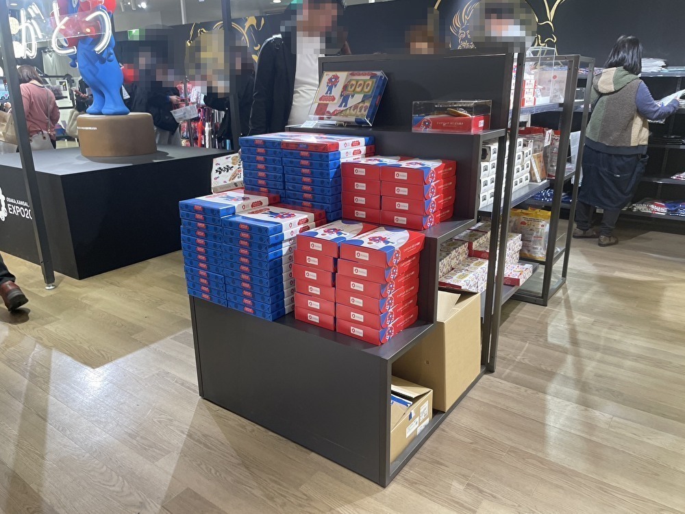 私が万博にいったときはお土産屋さんに入ることもできなかったので、ここで購入できるのは