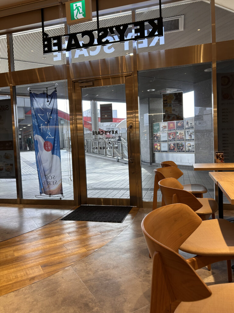 2階にあるキーズカフェさんです。こちらはJR王寺駅改札口からすぐ!!これは電車に乗り遅れることはない!