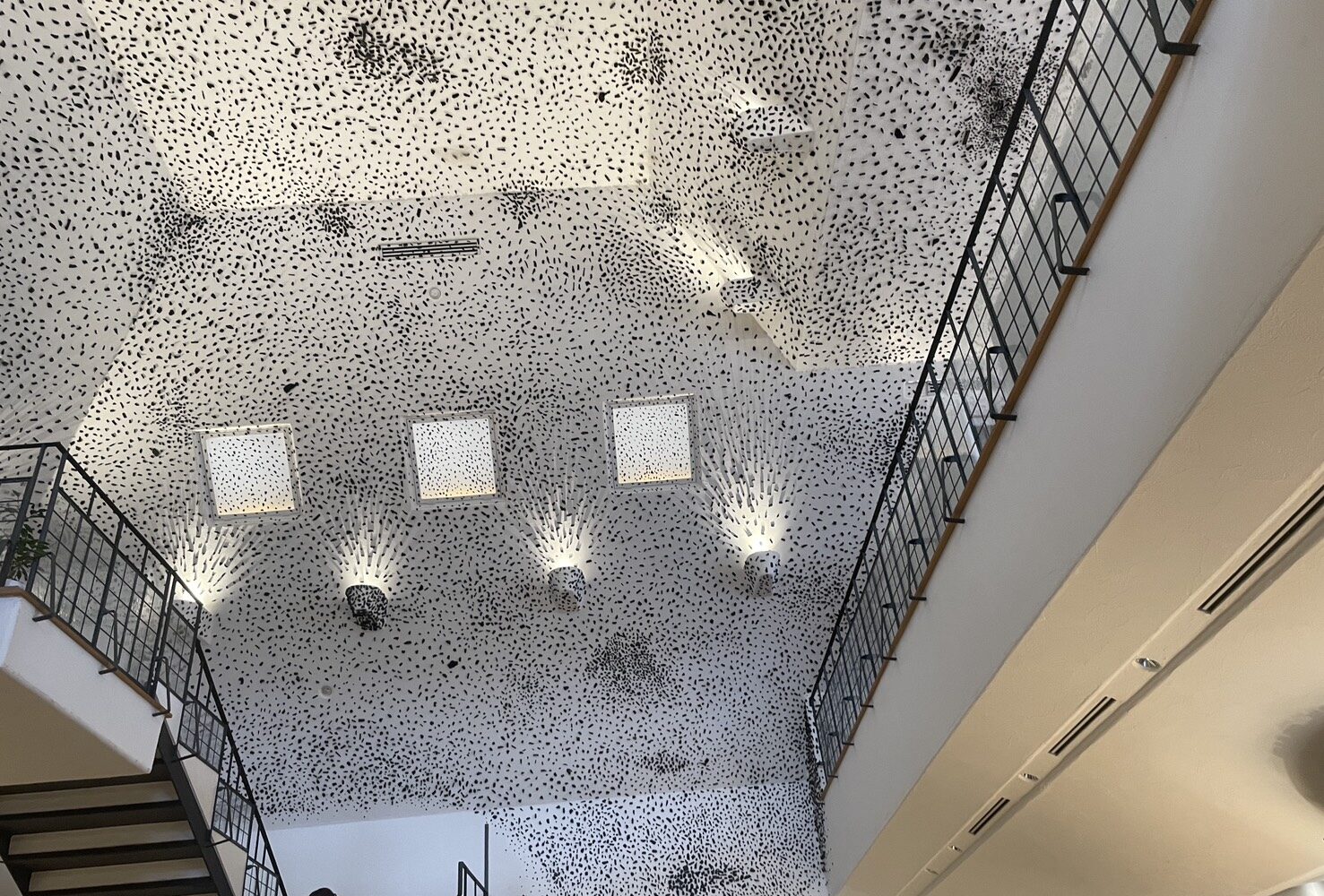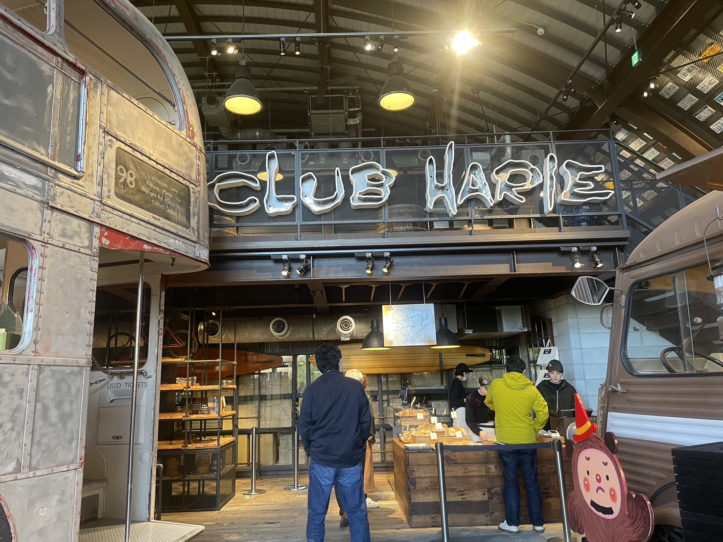 入り口すぐのショップの壁はぜひ見上げてほしいところです