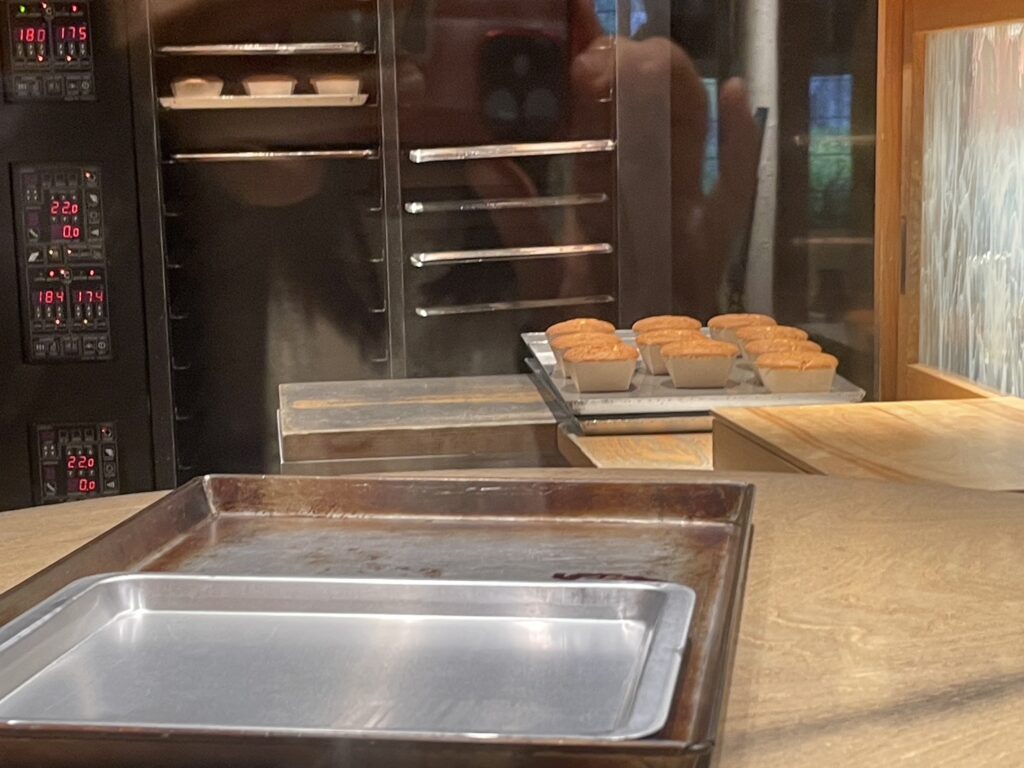 バームクーヘンを作っているところをはじめ、カステラを作っているところも見学できるので