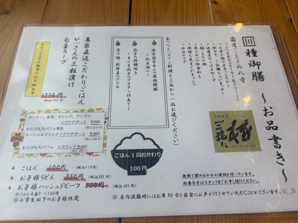 「旬彩食堂 三粒に種」にてランチへ伺いました。